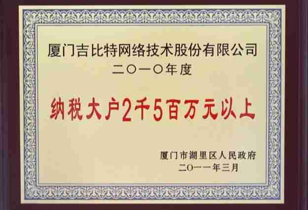 日前,,,,公司被厦门市湖里区人民政府授予了“2010年纳税大户”的荣誉称号,,充分体现了公司一贯合法纳税、、、诚信经营的良好企业社会公民行为。。。